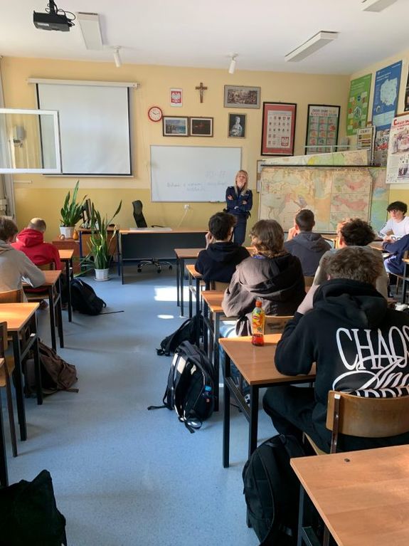Uczniowie w wieku 16 i 17 lat z Zespołu Szkół Chłodniczych i Elektronicznych w Gdyni uczestniczyli w zajęciach poświęconych odpowiedzialności prawnej nieletnich, cyberprzemocy, hejtowi i mowie nienawiści. Spotkanie prowadzili funkcjonariusze Wydziału Prewencji Komendy Miejskiej Policji w Gdyni.