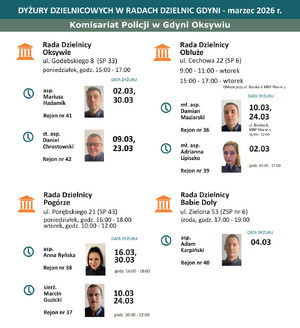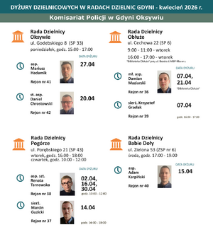 Grafik dyżurów dzielnicowych Komisariatu Policji w Gdyni Oksywiu w Radach Dzielnic: