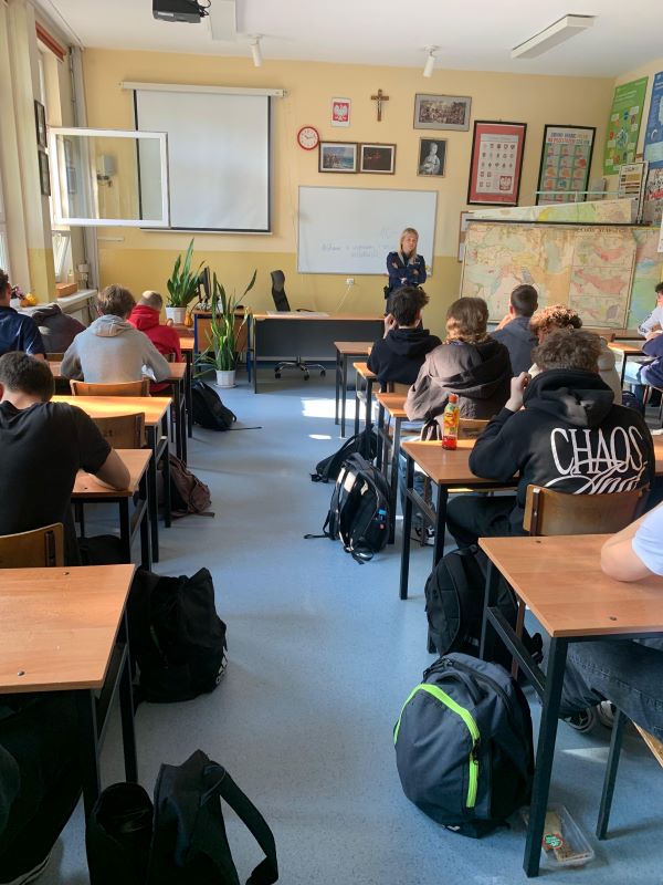 Podczas zajęć policjanci w przystępny sposób omówili zasady odpowiedzialności prawnej nieletnich oraz konsekwencje zachowań, które mogą prowadzić do naruszenia prawa – zarówno w świecie rzeczywistym, jak i w internecie. Uczniowie dowiedzieli się, jak rozpoznawać i reagować na przypadki cyberprzemocy oraz unikać zachowań mogących zostać uznanych za hejt lub mowę nienawiści. Spotkanie miało na celu zwiększenie świadomości młodzieży w zakresie bezpieczeństwa korzystania z technologii oraz kształtowanie postaw opartych na wzajemnym szacunku i odpowiedzialności.