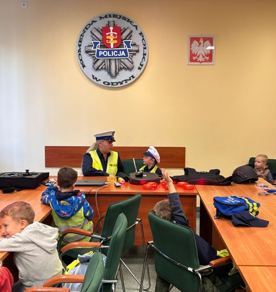 W Komendzie Miejskiej Policji w Gdyni gościły dzieci z Niepublicznego Przedszkola „Trampolina”. W wydarzeniu uczestniczyła policjantka z Zespołu Profilaktyki Społecznej Wydziału Prewencji KMP w Gdyni, a także zaproszeni goście – funkcjonariuszka z Wydziału Ruchu Drogowego oraz technik kryminalistyki.