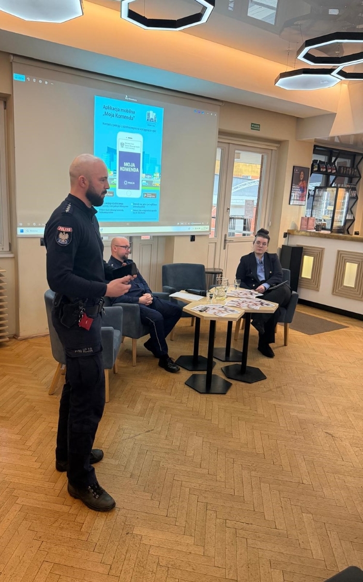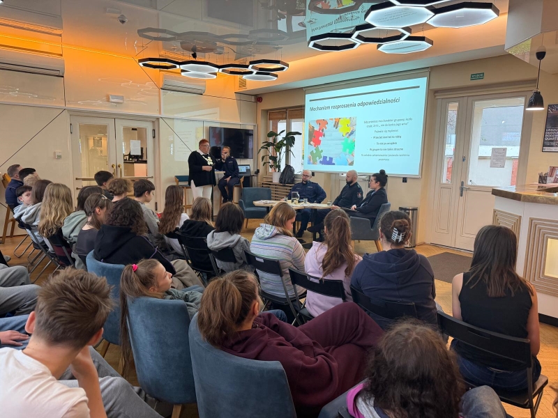 Nie inaczej było 20 listopada 2025 roku w Gdyńskim Centrum Kultury. Spotkanie zgromadziło wielu mieszkańców naszego miasta, w tym także uczniów ostatnich klas Szkoły Podstawowej nr 21. Wśród prelegentów mogliśmy zobaczyć i posłuchać p. Annę Blokus-Szkodzińską, wiceprezes Fundacji Pozytywni, która mówiła o hejcie i mowie nienawiści. Pani Emilia Brzozowa, wykładowca w Wyższej Szkole Administracji i Biznesu, przybliżyła tematykę odpowiedzialności prawnej nieletnich, natomiast aspirant sztabowy Arkadiusz Rychert, dzielnicowy Komisariatu Policji w Gdyni Śródmieściu, opowiedział o Krajowej Mapie Zagrożeń, Aplikacji Moja Komenda oraz programie „Dzielnicowy Bliżej Nas”, który pomaga mieszkańcom nawiązać bezpośredni kontakt ze swoim dzielnicowym i wspólnie rozwiązywać lokalne problemy.