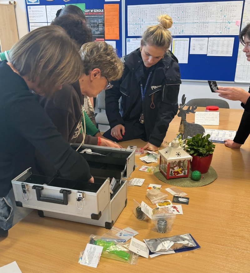 Podczas wizyty w szkole policjantki spotkały się również z nauczycielami i pedagogami. Spotkanie poświęcone było tematyce narkotyków oraz zagrożeniom wynikającym z ich używania. W jego trakcie wykorzystano pakiet edukacyjny, który umożliwił omówienie najczęściej występujących substancji oraz mechanizmów ich działania. Uczestnicy mieli okazję poszerzyć wiedzę na temat sygnałów ostrzegawczych mogących świadczyć o sięganiu po środki odurzające, a także sposobów reagowania i podejmowania działań wychowawczych w środowisku szkolnym.