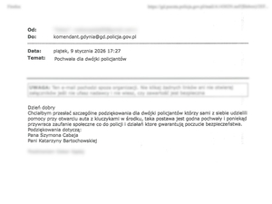 W swojej korespondencji mieszkaniec podkreślił życzliwą postawę policjantów oraz ich gotowość do niesienia pomocy. Zaznaczył, że takie zachowania sprzyja budowaniu wzajemnego zaufania i pozytywnego wizerunku Policji wśród mieszkańców.