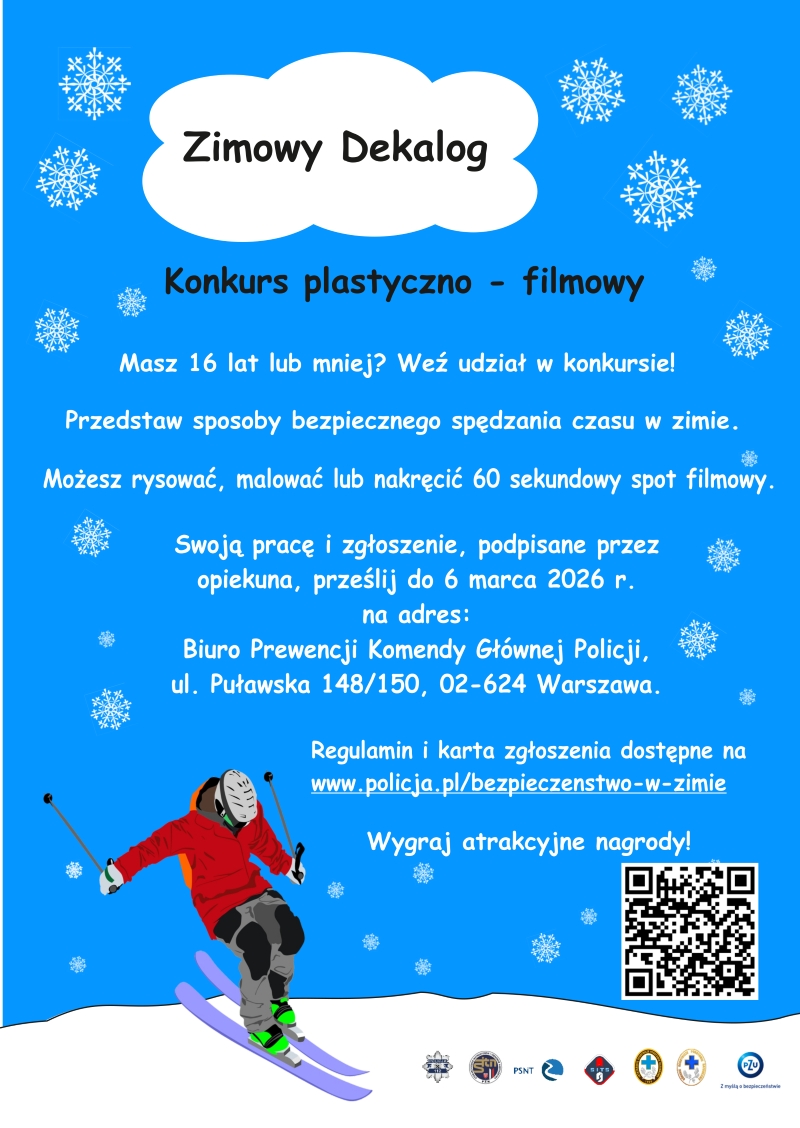 Dla najmłodszych Policja organizuje konkurs plastyczno–filmowy związany z przedstawieniem swoich sposobów na bezpieczne spędzanie czasu w zimie. Można je narysować, namalować bądź nakręcić 60-sekundowy materiał filmowy. Swoją pracę konkursową oraz zgłoszenie podpisane przez opiekuna należy przesłać do 6 marca na adres Biura Prewencji Komendy Głównej Policji: ul. Puławska 148/150, 02-624 Warszawa.