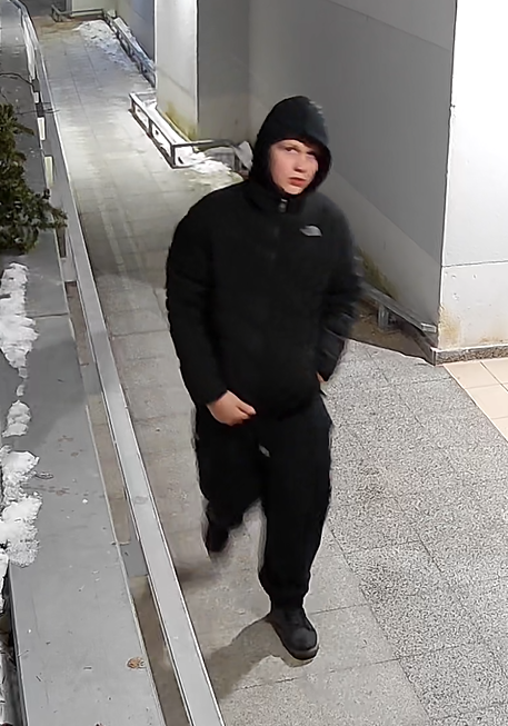 Na podstawie nagrań z monitoringu ustalono wizerunek osoby. Jest to mężczyzna średniego wzrostu, w wieku około 20 lat. W dniu zdarzenia ubrany był w kurtkę koloru czarnego, czarne spodnie dresowe, a na głowie miał założony kaptur.