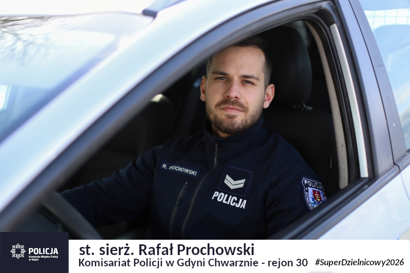 W ramach trwającego plebiscytu #SuperDzielnicowy2026 prezentujemy sylwetkę dzielnicowego z Komisariatu Policji w Gdyni Chwarznie, odpowiedzialnego za podległy mu rejon służbowy nr 30 – st. sierż. Rafała Prochowskiego.